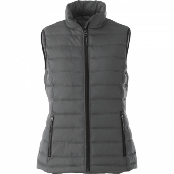 Add an extra layer of warmth with the lightweight Mercer. Featuring 100% polyester faux down insulation, an interior storm flap with chin guard and water-repellent finish, the Mercer is designed for decoration with a high-visibility back-shoulder panel. The women's style has a dropped back hem with shaped seams and a tapered waist for a more natural fit. With trendy retail styling, the Mercer is a fashion-forward look for any brand.::Additional charges may apply for multiple location imprints.