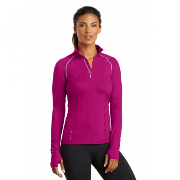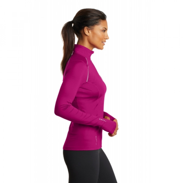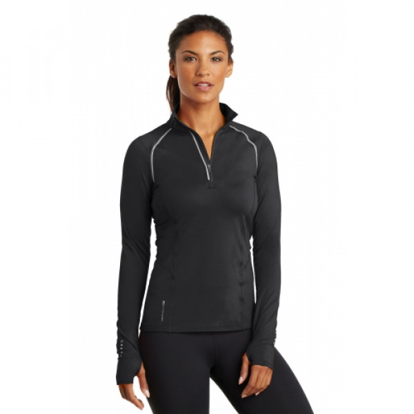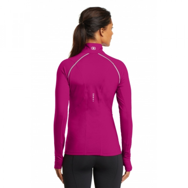 STAY-COOL WICKINGODOR CONTROLZONED VENTILATIONSTRETCHFLATLOCK SEAMS FOR COMFORTREFLECTIVE DETAILS::5.6-ounce, 88/12 poly/spandex jersey body::4.1-ounce, 92/8 poly/spandex mesh panels::Reflective taping at front and back raglan sleeves and zipper::Mesh at center back::Reflective O heat transfer at back neck::Reflective stacked O heat transfers at back and sleeves::OGIO Endurance heat transfer label for tag-free comfort::Modified raglan sleeves with thumbholes for warmth::Slight drop tail hem::Reflective O Endurance heat transfer at right hem