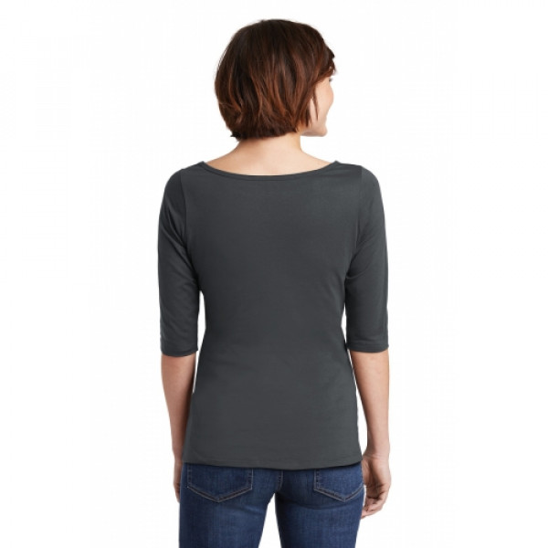 Comfortable with a polished look.::4.3-ounce, 100% combed ring spun cotton, 32 singles::Tear-away label::Binding at neck::Elbow-length sleeves