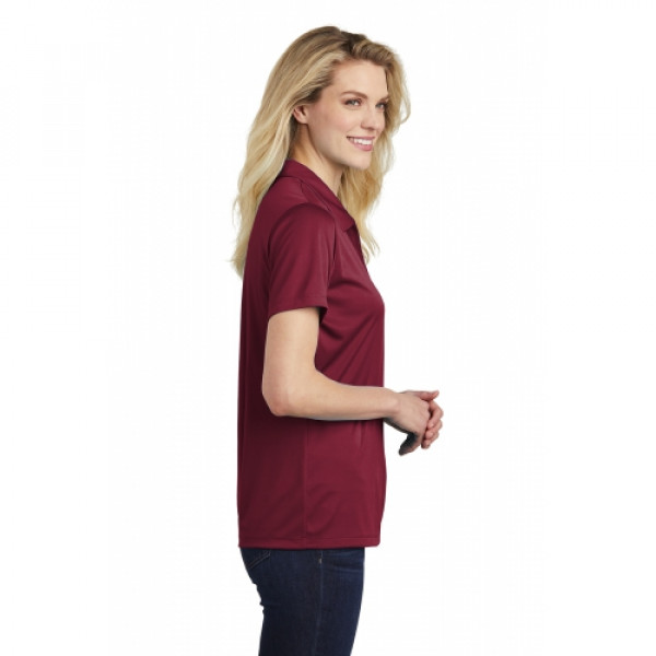 Our #1 performance tee fabric—offered in a color-locking, moisture-wicking polo—to expand your uniforming options.::3.8-ounce, 100% polyester interlock with PosiCharge technology::Gently contoured silhouette::Flat knit collar::Removable tag for comfort and relabeling::Taped neck::Elongated 2-button placket with dyed-to-match buttons::Set-in, open hem sleeves