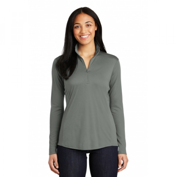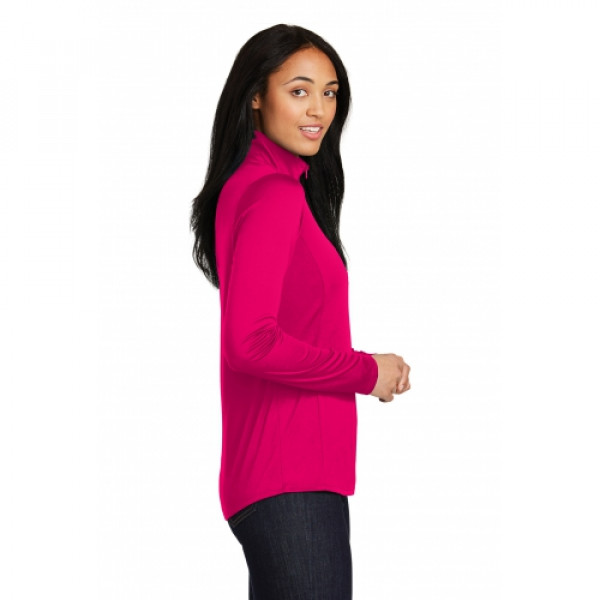 This lightweight pullover locks in color and wicks moisture. It’s versatile enough for year-round wear.::3.8-ounce, 100% polyester interlock with PosiCharge technology::Gently contoured silhouette::Removable tag for comfort and relabeling::Cadet collar::Reverse coil zipper::Princess seams::Set-in sleeves::Open cuffs and hem::Drop tail hem