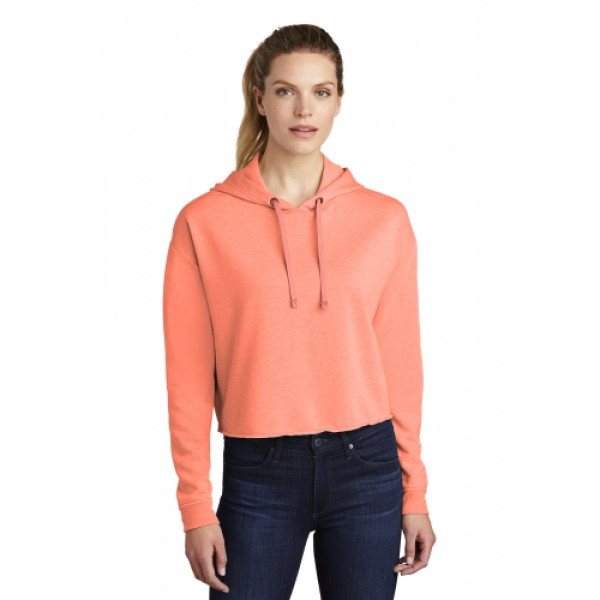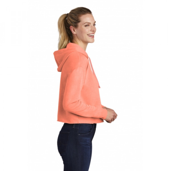 An on-trend cropped fit joins an extra-soft hand, moisture wicking performance and color-locking PosiCharge technology for a winning look. 75/13/12 poly/cotton/rayon with PosiCharge technologyBoxier fitDrop shoulderTear-away removable labelThree-panel hoodHood and neck taping::Rib knit cuffs::Raw edge hem