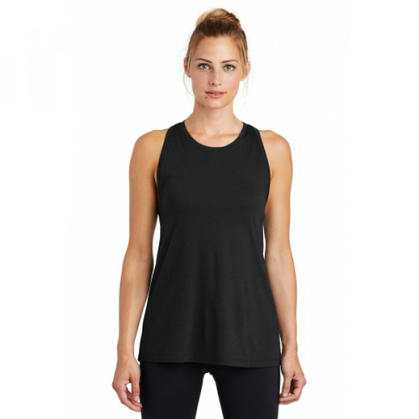 This ultracomfortable racerback tank combines moisture-wicking performance, unbeatable tri-blend softness and PosiCharge technology to lock in color.::4.4-ounce, 75/13/12 poly/cotton/rayon jersey with PosiCharge technology::4.6-ounce, 75/13/12 poly/cotton/rayon jersey with PosiCharge technology (Black Triad Solid)::Tear-away removable label::Gently contoured silhouette::Self-fabric binding at neck and armholes::Slight drop tail hem