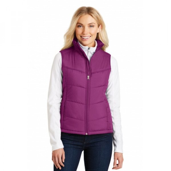 Keep the warmth centered on your core in our Puffy Vest. These styles are great for layering over a long sleeve shirt or under a jacket. Some feature a colorful lining.::100% polyester shell::100% polyester lining::Reverse coil center front zipper::Interior storm flap::Interior zippered pocket::Interior pocket with drawcord and toggle::Front zippered pockets::Port Pocket™ for easy embroidery access::Open hem with drawcord and toggles for adjustability