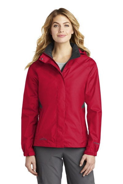 From misty mornings to evening downpours, this fully seam sealed, color-block jacket will help keep you dry and protected from whatever Mother Nature throws at you. 5000MM fabric waterproof rating, 5000G/M2 fabric breathability rating, detachable hood with drawcord and toggles for adjustability, storm flap with hook and loop closures, zippered chest pocket, front zippered pockets, adjustable tab cuffs with hook and loop closures and an open hem with drawcord and toggles. ::Contrast Eddie Bauer logo on hem ::WeatherEdge® logo on left sleeve::100% polyester dobby shell, mesh body lining and 100% nylon accents