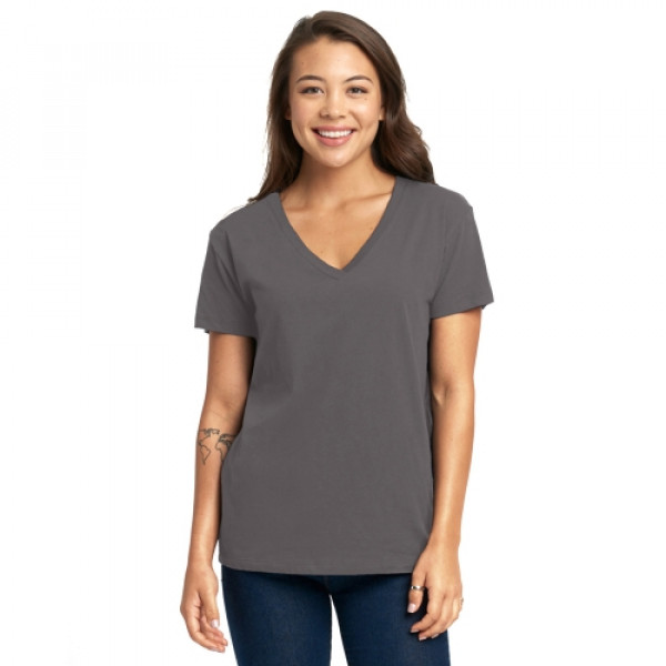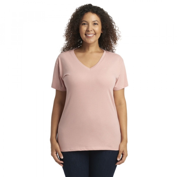 Fabric:::4.3 oz.,100% combed ring-spun cotton fine jersey, 32 singles::Heather Colors are 90% ringspun combed cotton fine jersey, 10% polyesterFeatures:::Relaxed fit::Front cover-stitched 1x1 baby rib-knit set-in collar::Tear-away label::Crossover V