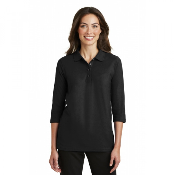 Our silky soft, classic polo in a popular sleeve length.::5-ounce, 65/35 poly/cotton pique::Flat knit collar::4-button placket::Metal buttons with dyed-to-match plastic rims::Open hem sleeves::Side vents