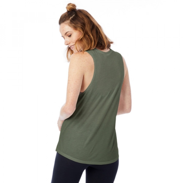 Fabric:::3.1 oz., 50% polyester, 50% rayon, 40 singlesFeatures:::Classic fit::Open crewneck::Bound neckband::Dropped armhole::Curved shirttail hem::Double needle finishing at hem & armhole::Imported