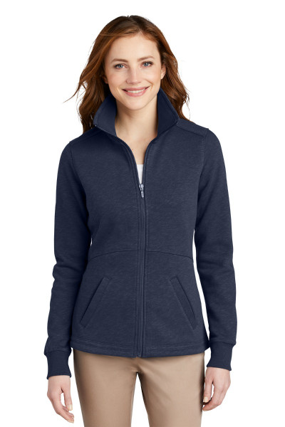 This superb jacket is office-appropriate with its slub texture and thoughtful details. A brushed interior adds warmth, while waist shaping makes for a flattering fit.::9-ounce, 65/35 cotton/poly::Rib knit inside collar::Twill tape trim at neck::Front shoulder seaming with back yoke::Reverse coil zipper::Rib knit cuffs::Front pockets::Open hem