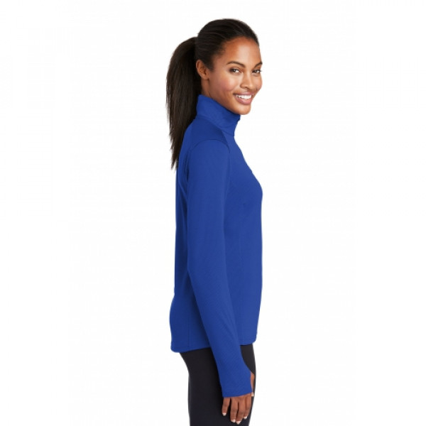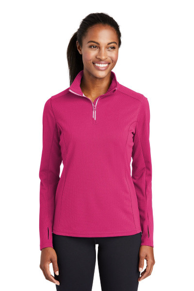 This mid-weight pullover has an unbeatable textured look with contrast zipper taping. Plus, it performs by wicking moisture.::100% polyester::Cadet collar::Tag-free label::Taped neck::Dyed-to-match Vislon zipper and pull::Silver zipper tape::Angled chin guard for additional comfort::Set-in sleeves::Thumbholes to keep hands warm::Front and back princess seams::Open cuffs and slight drop tail hem