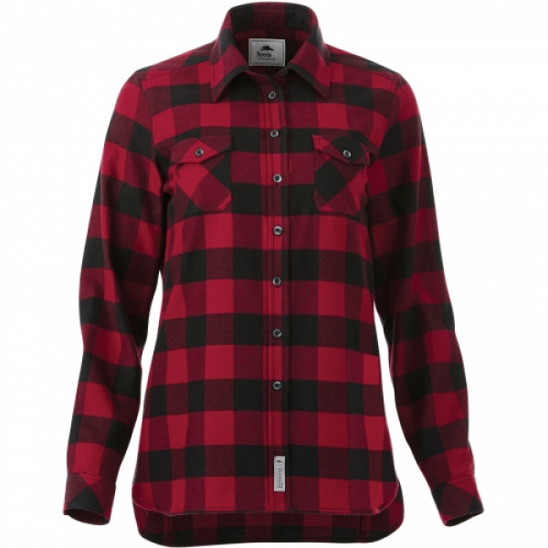The Womens Roots73 Sprucelake Long Sleeve Shirt is made from a soft, easy care cotton flannel with an on-trend check pattern for a classic look. ::A longer shirttail hem and shaped seams make this shirt a versatile choice.