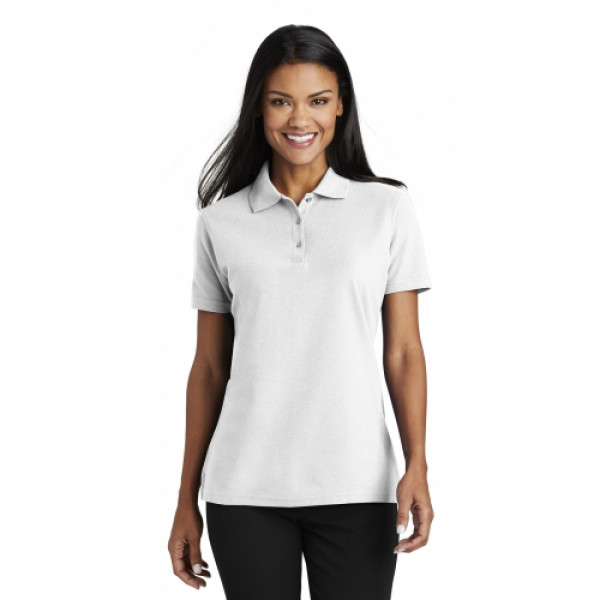We've taken our classic silhouette and added superior wrinkle and shrink resistance. Odor-fighting properties help minimize odor. We completed the moisture-wicking polo with a stain-release finish for long-lasting, professional wear.::5.6-ounce, 60/40 cotton/poly pique::Traditional, relaxed look::Double-needle stitching throughout::Flat knit collar::3-button placket with dyed-to-match buttons::Open hem sleeves::Side vents