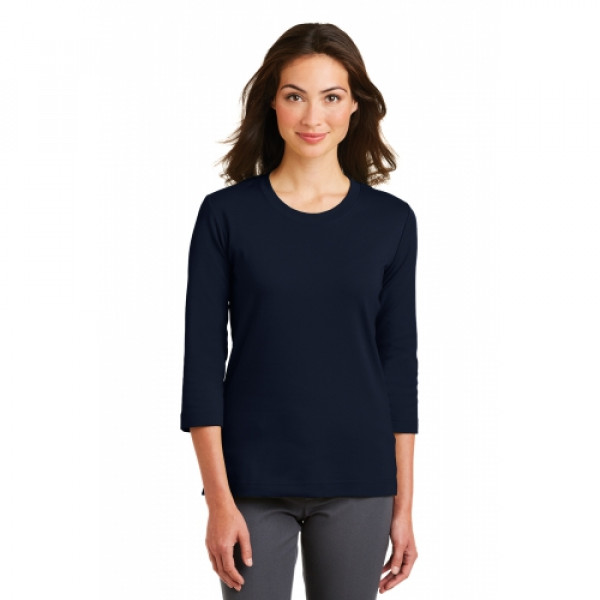 Port Authority Women's Stretch Cotton 3/4-Sleeve Scoop Neck Shirt