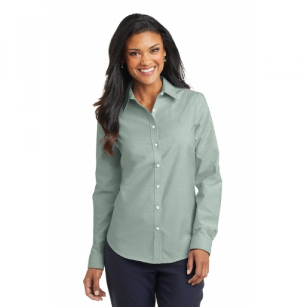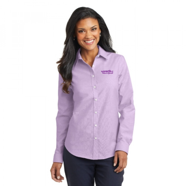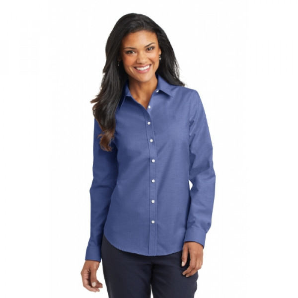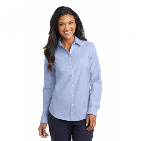 Look your best in a tried-and-true oxford that performs. Designed to resist and release stains, our SuperPro Oxford has a soft hand and a wrinkle-free finish to keep you looking neat and professional all day long.::4.6-ounce, 60/40 cotton/poly::Open collar::Bust darts::Back shoulder pleats::Rounded adjustable cuffs