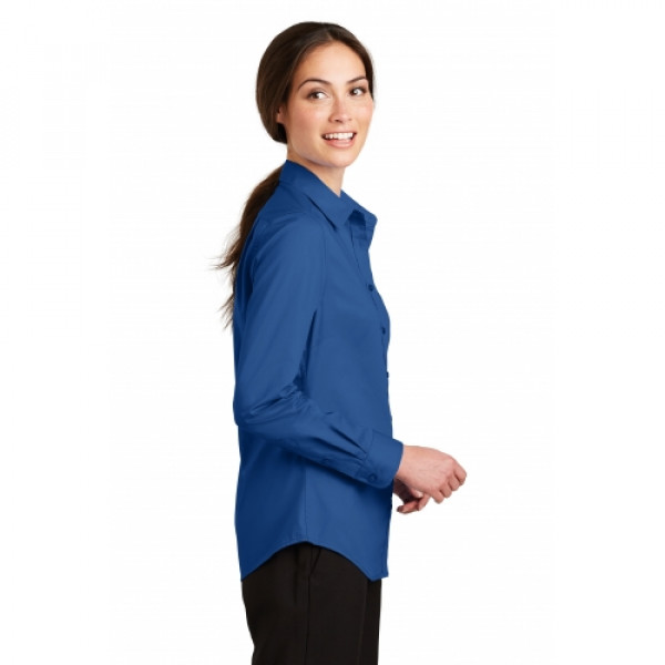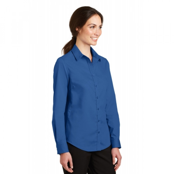 A heavy hitter in performance, our Ladies SuperPro Twill Shirt easily resists soil and wrinkles while releasing stains. Designed for comfort, this versatile shirt functions well in almost any work environment from the office to food service.::3.4-ounce, 55/45 cotton/poly::Open collar::Bust darts::Back yoke with side pleats::Dyed-to-match buttons::Button-through sleeve plackets::Two-button adjustable cuffs::Shirttail hem