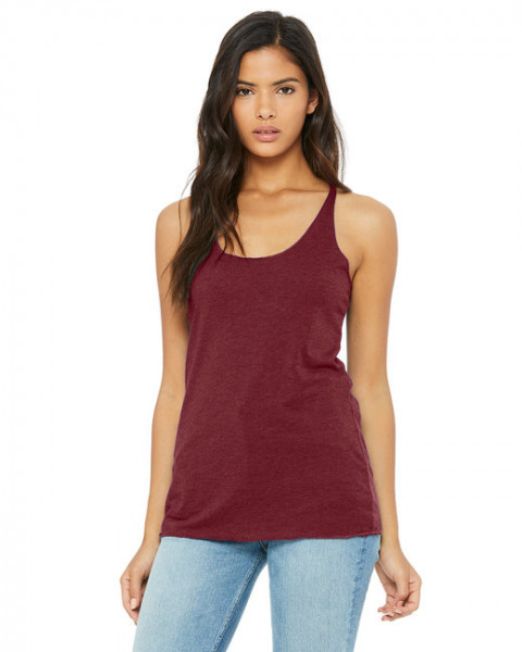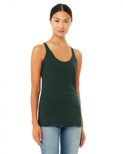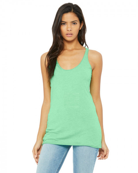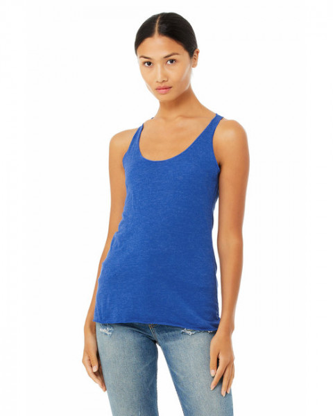 Fabric:::3.8 oz., 50% polyester, 25% combed and ringspun cotton, 25% rayon::40 singlesFeatures:::Retail fit::Racerback::Sideseamed::Tear-away label