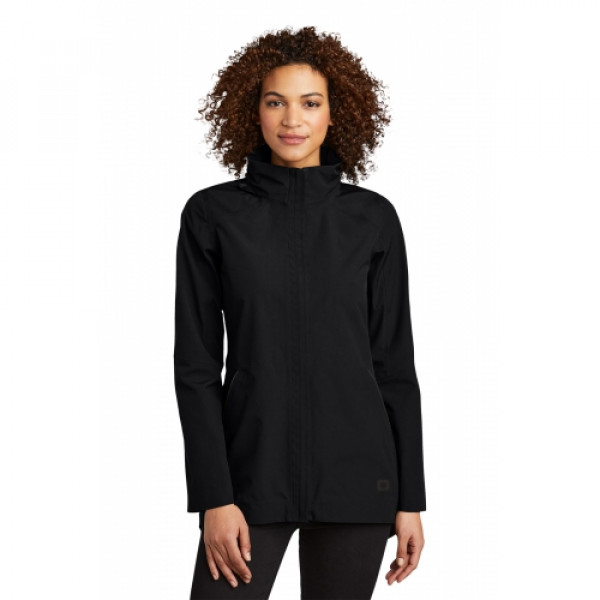 The OGIO Women's Utilitarian Jacket is a sleek, parka-length coat built for style and weather protection. Fully seam-sealed with a durable water-repellent poly shell, it offers 5K waterproofing and breathability to keep you dry and comfortable. Features include a packable hood, waterproof zippers, adjustable cuffs, and an interior waist drawcord for a flattering fit. Reflective details and hidden zippered pockets add functionality and style, making it perfect for tackling unpredictable weather.