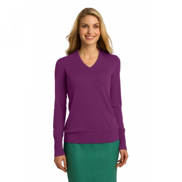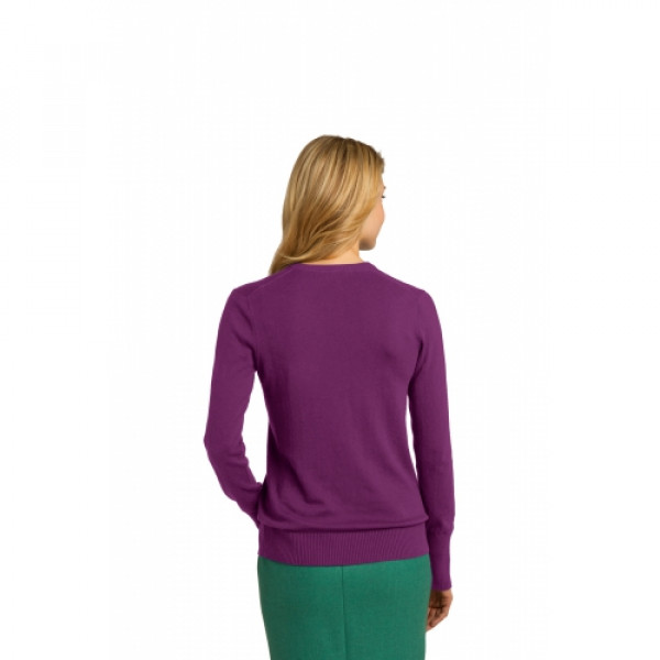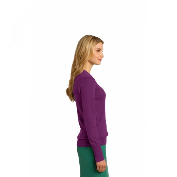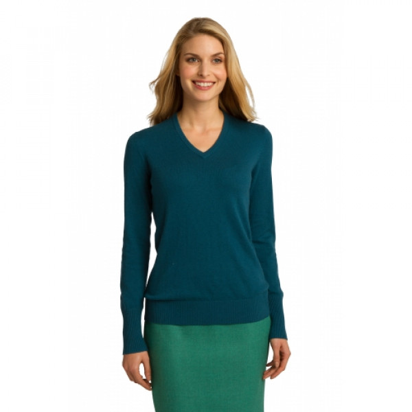 A beautiful and versatile addition to any work wardrobe, our fine-gauge v-neck sweater has fully-fashioned sleeves for strength, comfort and longer wear.::60/40 cotton/nylon::Rib knit v-neck, cuffs and hem::Stylish longer rib knit height at cuffs