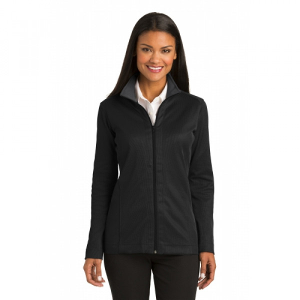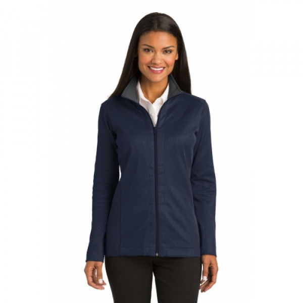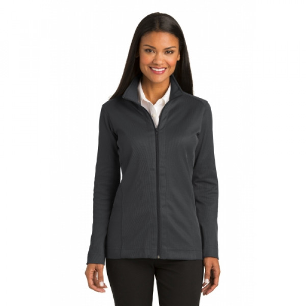With an inviting vertical texture, soft cotton interior and durable polyester exterior, this easy-to-layer style will have you thinking beyond a sweater for workdays or the weekend. ::7.5-ounce, 63/37 poly/cotton::Twill tape trim at neck::Contrast color inside cadet collar::Front and back shoulder seaming::Coil zipper::Open cuffs::Open hem