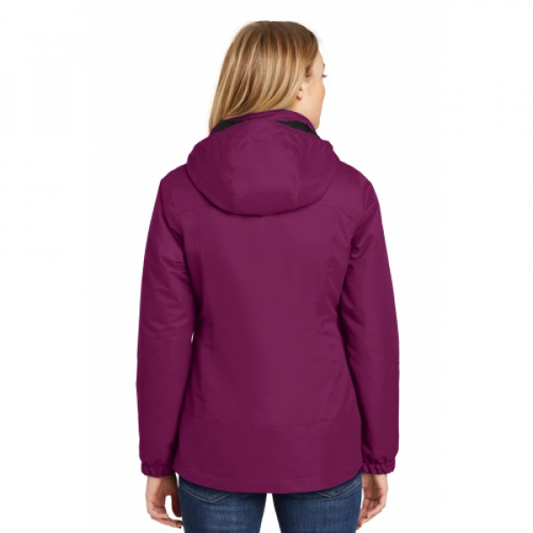 Packed with weather-fighting features, the Vortex Waterproof 3-in-1 provides a completely versatile outerwear system in one jacket. The fully seam-sealed waterproof shell and the warm polyfilled inner jacket can be worn separately or combined for optimal warmth and protection.::100% polyester shell::100% nylon zip-in inner jacket with 3-ounce polyfill::3000MM fabric waterproof rating::1000G/M2 fabric breathability rating::Detachable hood with drawcord and toggles for adjustability::Full-length interior storm flap::Chin guard::Contrast zippered chest and sleeve pockets::Front zippered pockets::Adjustable tab cuffs with hook and loop closures::Port Pocket™ for easy embroidery access::Inner jacket has front slash pockets