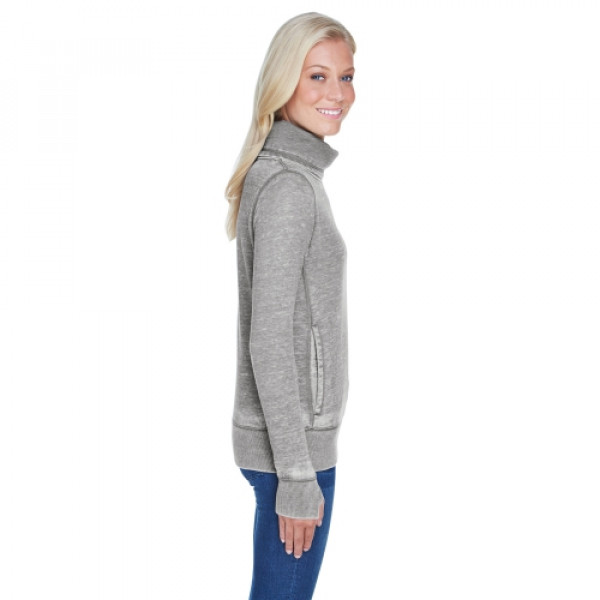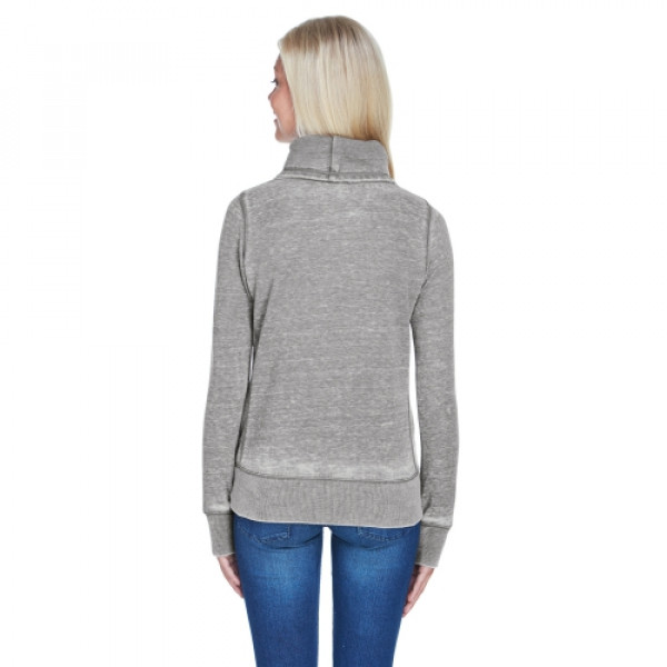 Fabric:::7 oz., 55% cotton, 45% polyester burnout::Acid-washed with silicone finishFeatures:::Self fabric cowl neck::Welt pockets along side gusset::2x1 rib cuffs with thumbholes