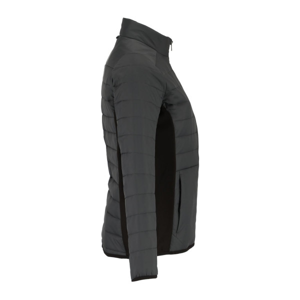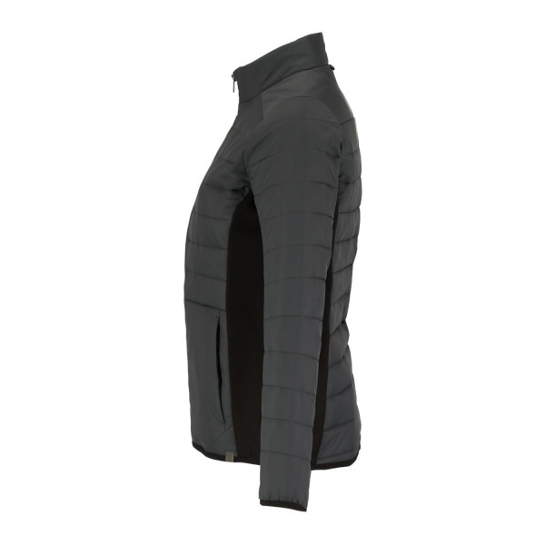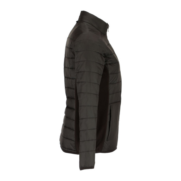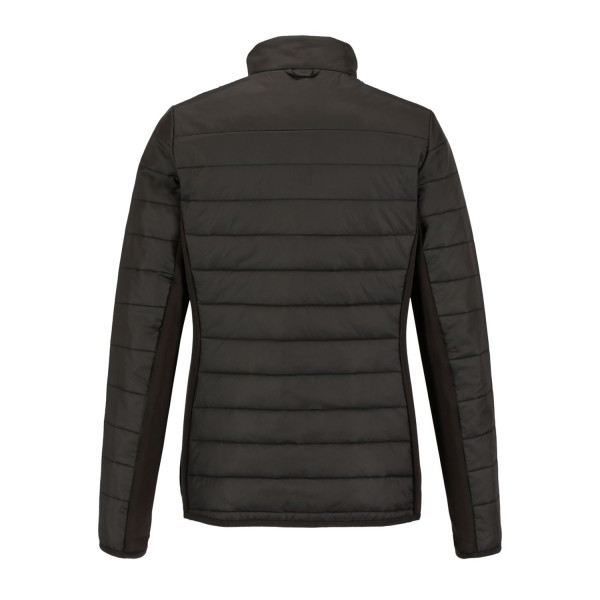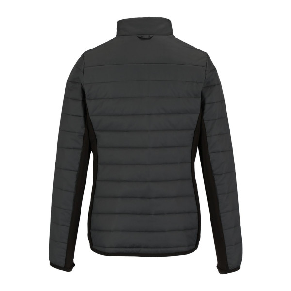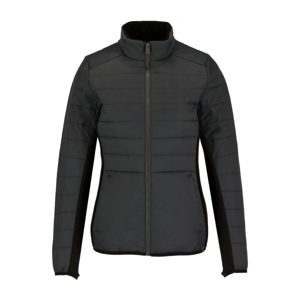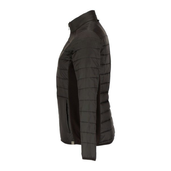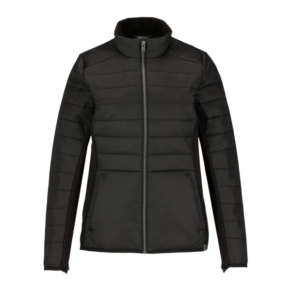 The Geneva Eco Hybrid Down Puffer Jacket features 100% recylced nylon body and PFC-Free water resistant coating. This eco-friendly women's jacket is light, with 100% recycled polyester soft fill insulation. High-tech minimalism can go a long way outdoors, especially when it looks this good. With its lightweight, compact and multi-pocket design, this full zip jacket offers active people a versatile and stylish apparel solution that affords greater mobility for its user. The women's option features shaped seams and a tapered waist, sleeve cuffs with thumb exit and a drop back hem. One percent of all Eco sales are donated to environmental profits through a partnership with 1% For The Planet.