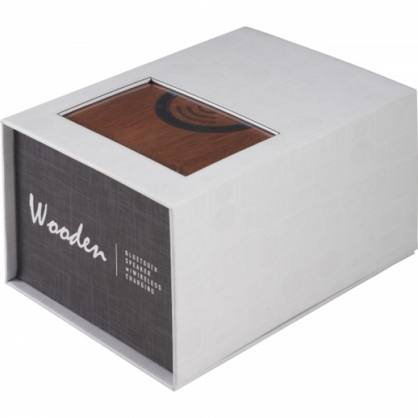 Elevate your tech setup with this beautifully crafted wooden Bluetooth speaker that combines premium sound with modern functionality. Featuring a 3-watt output and built-in music controls, this compact speaker offers hands-free convenience and rich audio quality. The top surface also functions as a wireless charging pad for compatible devices—ideal for desks, nightstands, or workspaces. A high-end promotional product that can be custom branded for stylish and functional gifting.
