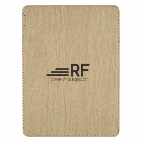 Woodgrain Wireless Charging Mouse Pad w/ Phone Stand