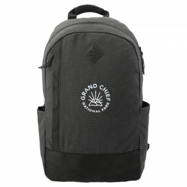 The Field & Co. Woodland 15” Computer Backpack features custom wood grain lining and a padded 15” laptop sleeve in the zippered main compartment. This backpack also features a front zippered pocket, water bottle sleeve, and a premium vinyl lash tab. Add this backpack to your luggage with the trolley sleeve or carry using the padded, adjustable shoulder straps. Disclaimer: Due to the nature of the waxed canvas, material will have a distressed look and feel.