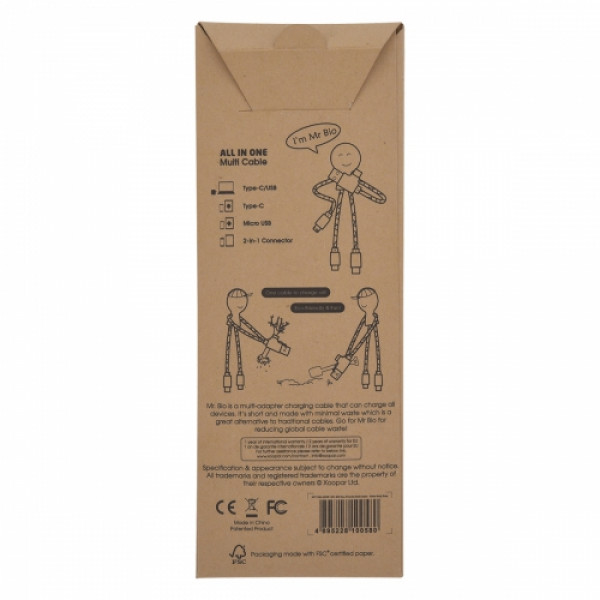 ::Compatible With Apple® 8-Pin, Micro USB And Type-C Devices::Biodegradable And Recyclable::Input: USB And Type C::Output: Micro USB, Dual Tip Micro/8-Pin And Type C::Simply Plug The Cable Into A Powered USB Port And Then Into Your Device Or Smartphone::Charge Multiple Devices At Once When Using An Ample Power Source::Apple is a trademark of Apple Inc., registered in the U.S. and other countries.