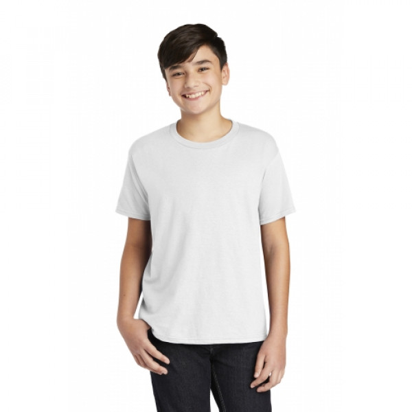 ::4.3-ounce, 100% combed ring spun cotton::TearAway label::Seamed collar::Shoulder-to-shoulder taping::Double-needle sleeves and hem