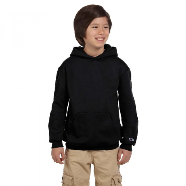 ::50% cotton, 50% polyester::Made with recycled polyester fibers from plastic bottles::Durable coverstitching throughout::Two-ply hood::Set-in sleeves and front pouch pocket::Heavy rib knit waistband and cuffs::“C” logo at left cuff; no drawcord for safety