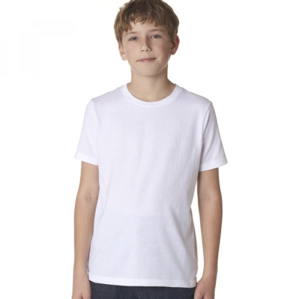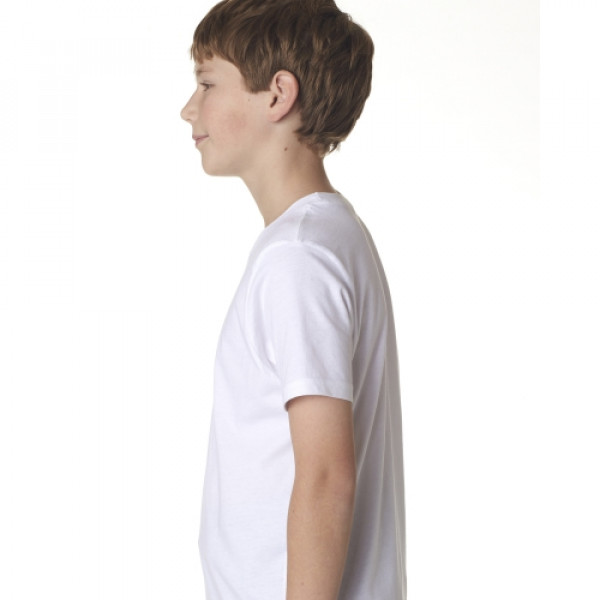 Fabric:::100% combed ringspun cotton fine jersey::4.3 oz.::32 singles::fabric laundered for reduced shrinkageFeatures:::1x1 baby rib-knit set-in collar::Tear-away label::Sideseamed