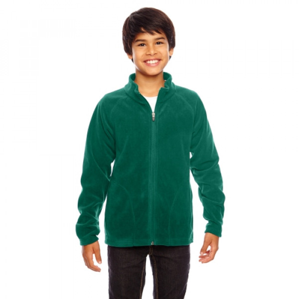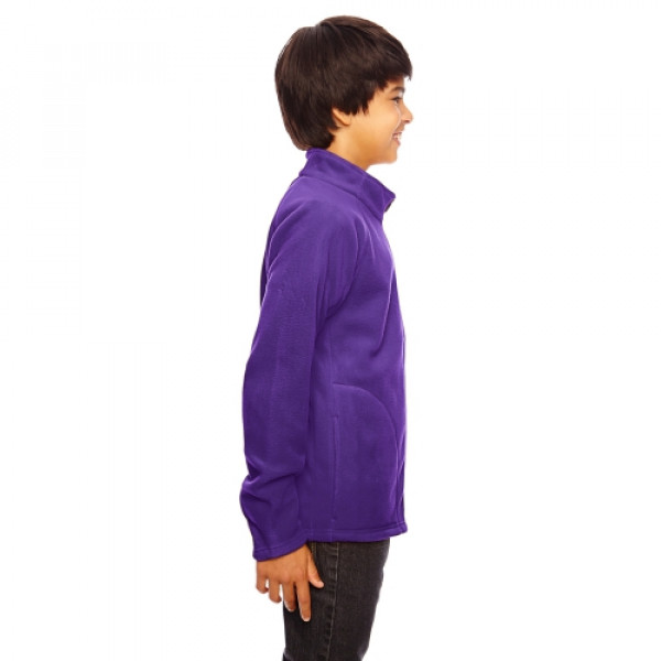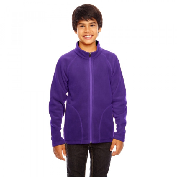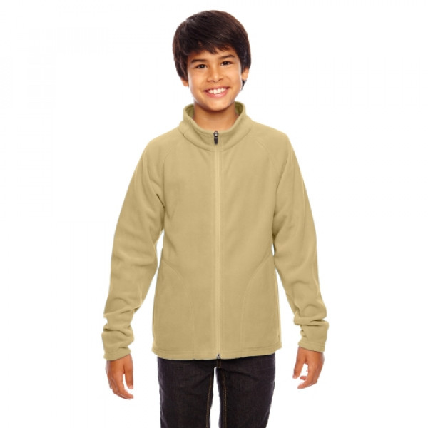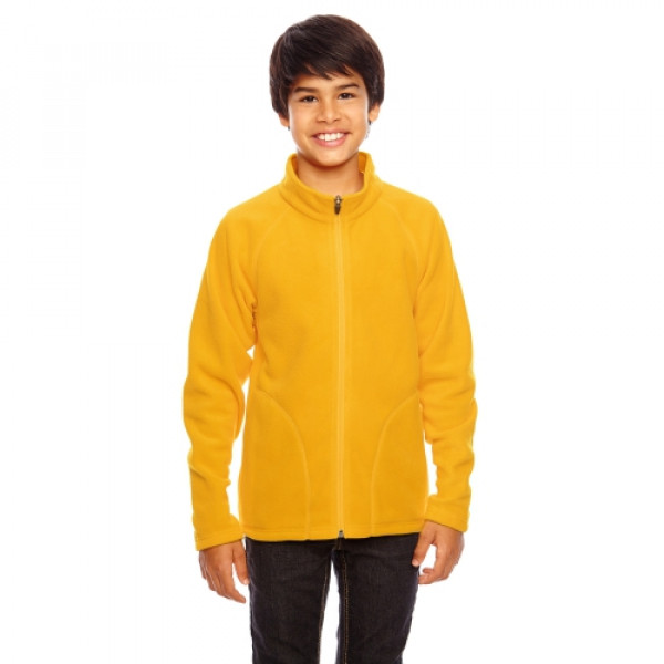 Fabric:::5.9 oz., 100% polyester microfleece with anti-pill finishFeatures:::center front reverse coil zipper with semi-autolock rubber pull tab::triple-needle coverstitch at raglan sleeve and front pockets::inseam front side pockets::self-fabric gusset at cuffs::double-needle stitch at bottom hem