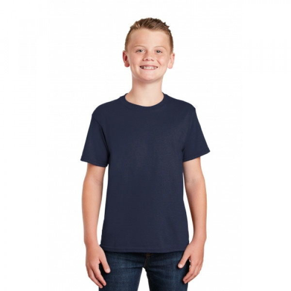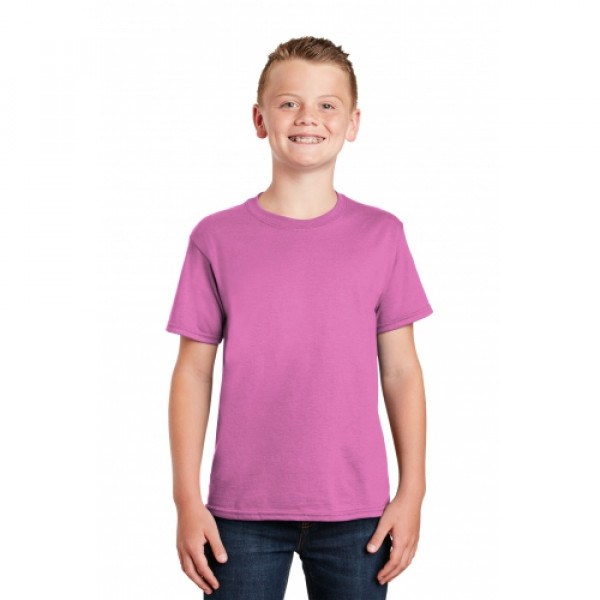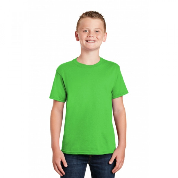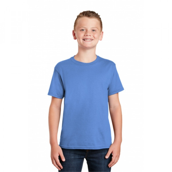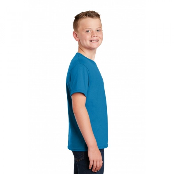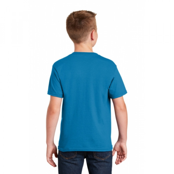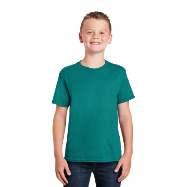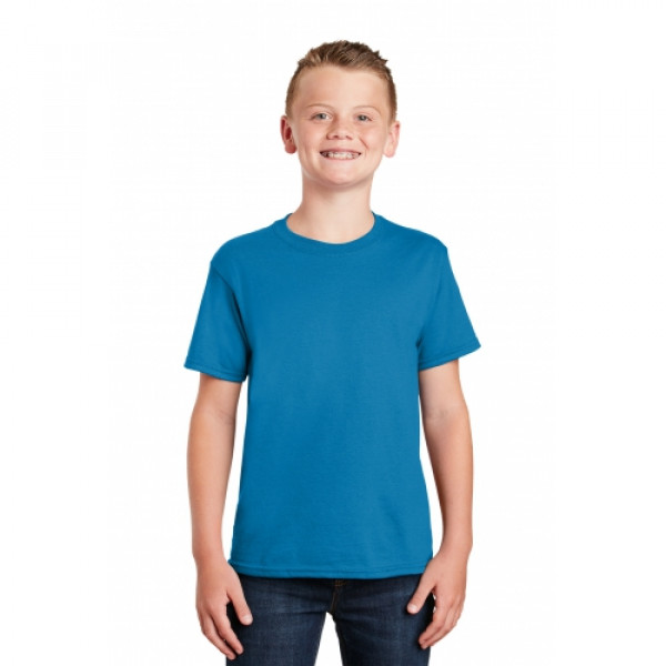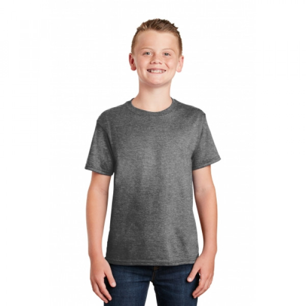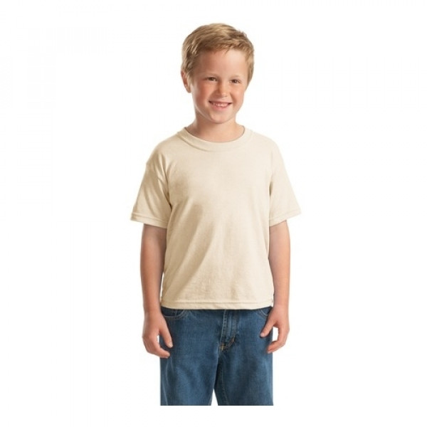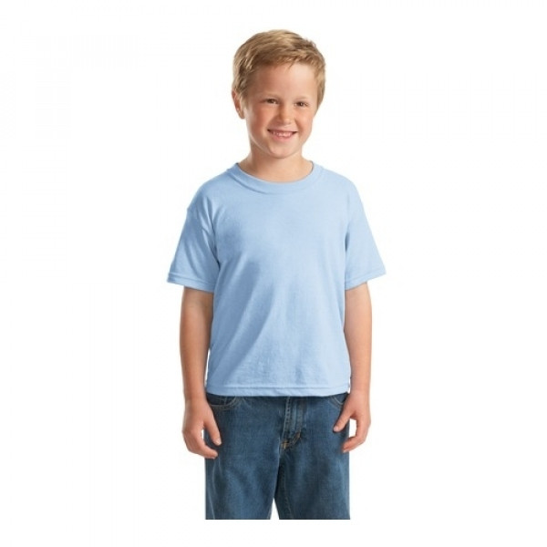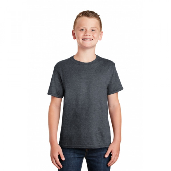 5.6-ounce 50/50 cotton/DryBlend poly Double-needle sleeves and hem Taped neck and shoulders