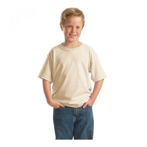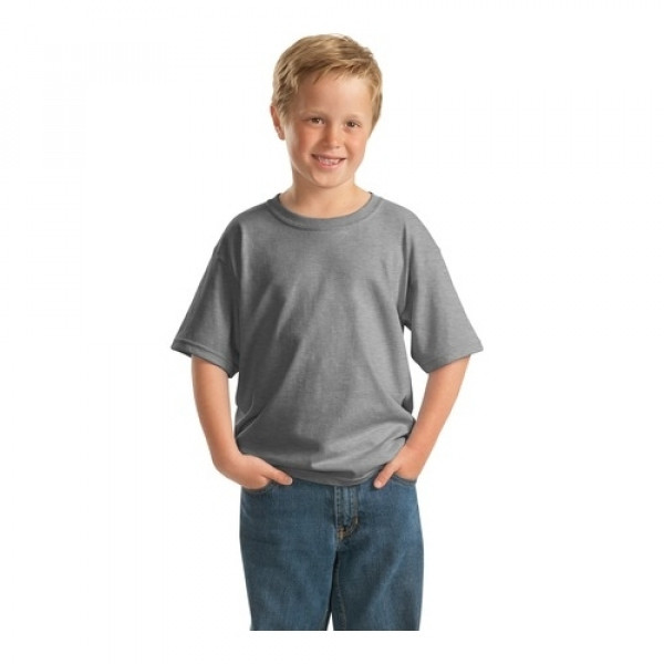 5.3-ounce 100% cotton (preshrunk) Double-needle sleeves and hem Taped neck and shouldersAsh is 99/1 cotton/poly. Sport Grey is 90/10 cotton/poly.