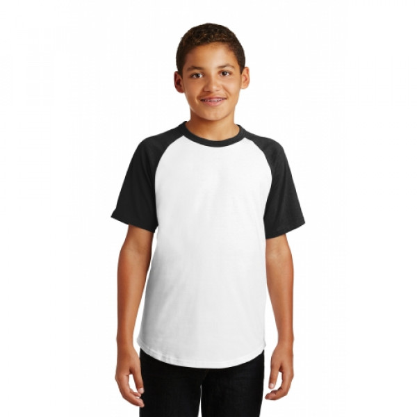 An authentic team look in soft, comfortable cotton.::5.2-ounce, 100% ring spun combed cotton::Tag-free label::Rib knit neck::Raglan sleeves::Covered hem
