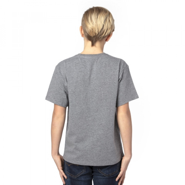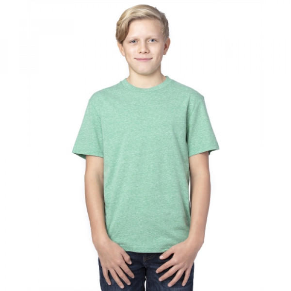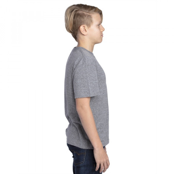 Fabric:::4.2 oz., 50% polyester, 38% combed ringspun cotton, 12% rayon, 32 singles::Frosted vintage heather triblend yarnFeatures:::Smooth surface ideal for screen printing::Retail fit::Side-seamed::Tear away label