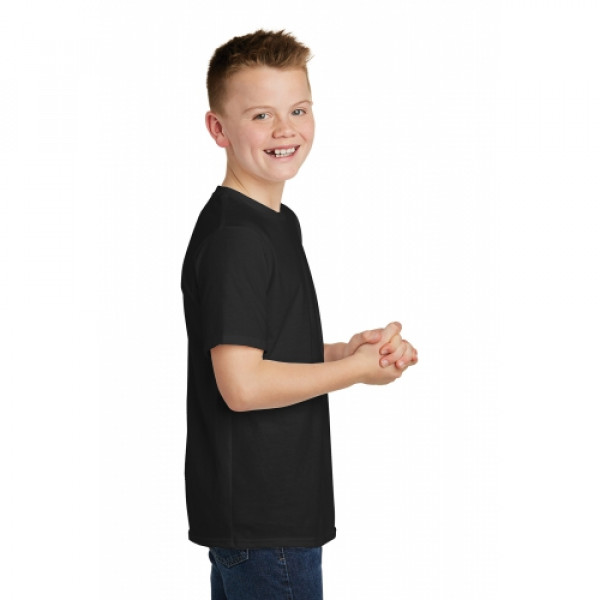 A comfortable tee that delivers style. ::4.3-ounce, 100% ring spun combed cotton, 30 singles::50/50 ring spun combed cotton/poly (Heathers, Frosts)::1x1 rib knit neck::Tear-away label::Shoulder to shoulder taping