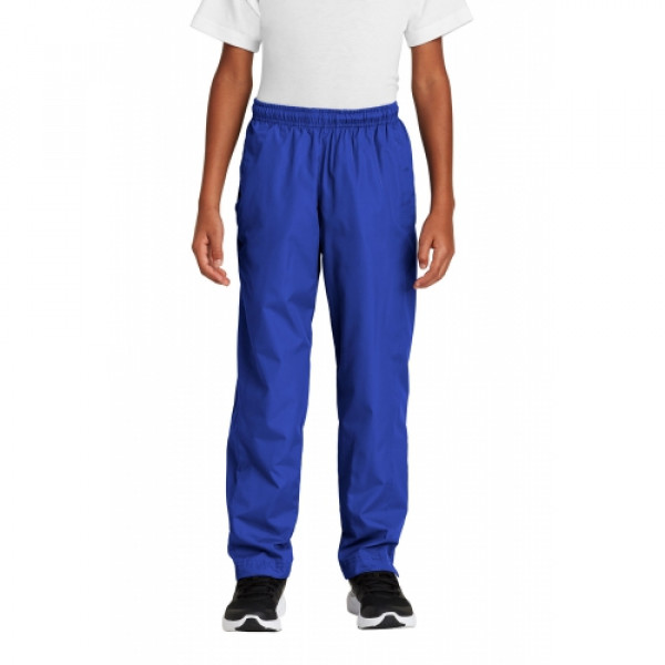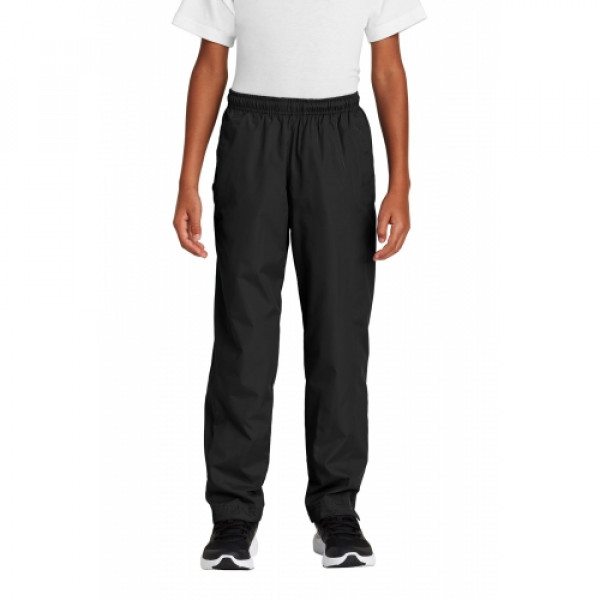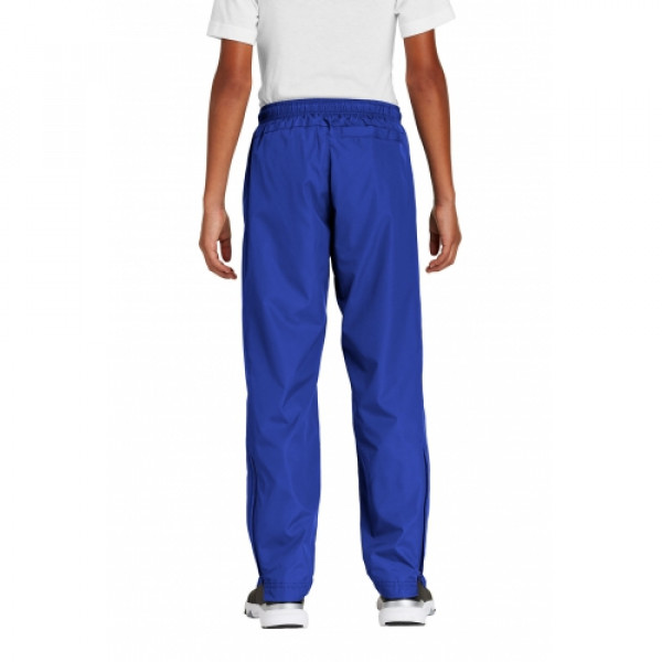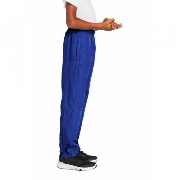 Whether worn alone or with a Sport-Tek wind shirt these pants provide lightweight protection. The relaxed styling and elastic drawcord waist ensure a comfortable fit.| 100% polyester Mesh lining above knees poly lining below for easy on/off Elastic waistband with drawcord Side pockets Back pocket with hook and loop closure Extended leg zippers