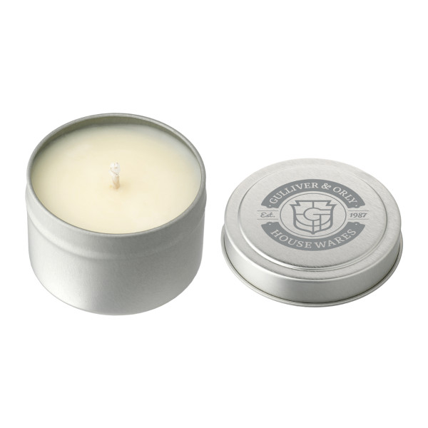 The Zen Tea 0.27oz Mini Tin Candle is made with food-grade soy wax and has a burn time of 23 hours.