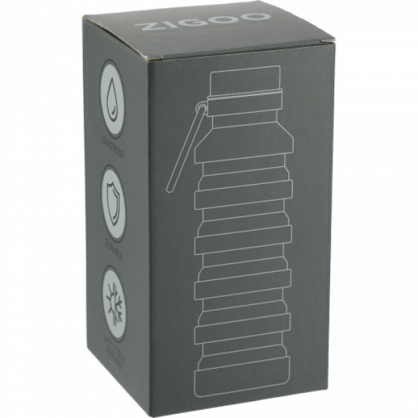 Save space and stay hydrated with the Zigoo Silicone Collapsible Bottle 18oz. This portable, lightweight, compact bottle collapses from a height of 9.2" to 5.45" and weighs just 198g for easy storage. The Zigoo bottle's unique design features thoughtful details like a leak-proof stainless steel lid, carabiner for easy carrying, and wide mouth for ice cubes.