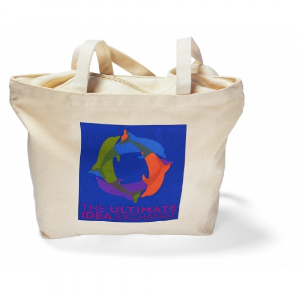 Carry your brand in style with this durable cotton canvas tote. A versatile promotional product, it’s ideal for conventions, trade shows, or everyday use. The secure zippered top and spacious design make it a reliable choice for keeping essentials safe while showcasing your custom logo or design.